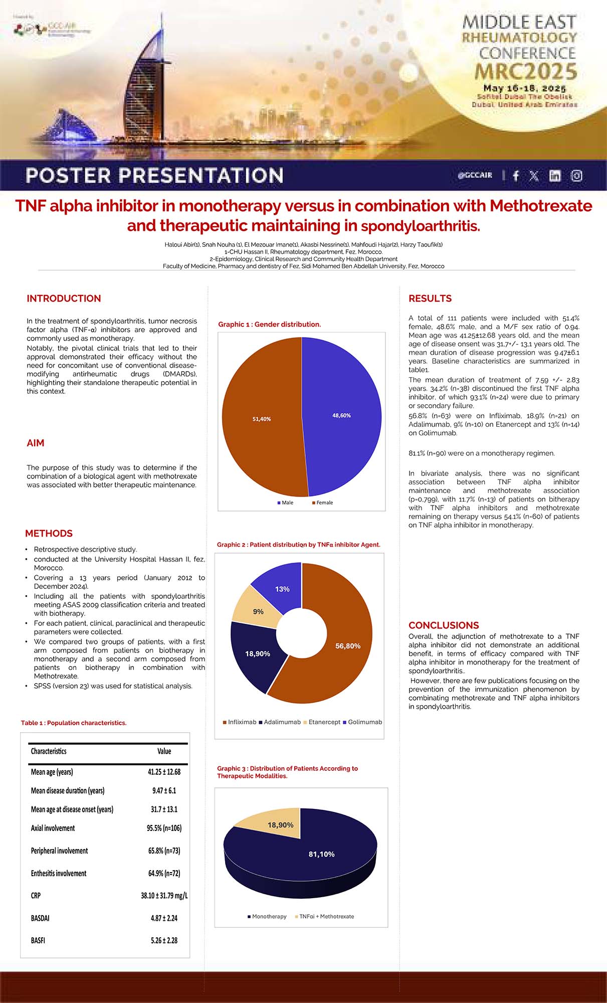 Tnf Alpha Inhibitor in Monotherapy Versus in Combination with Methotrexate and Therapeutic Maintaining in Spondyloarthritis